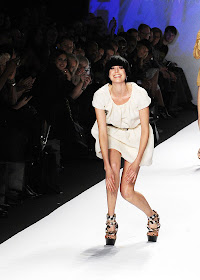 The funny thing is that Agyness Deyn's upskirt tumble wasn’t the biggest trainwreck to happen at the charity event, Kelly Osborne gave the catwalk a try. She lost a lot of weight from doing Dancing with the Stars, but she is still vile.